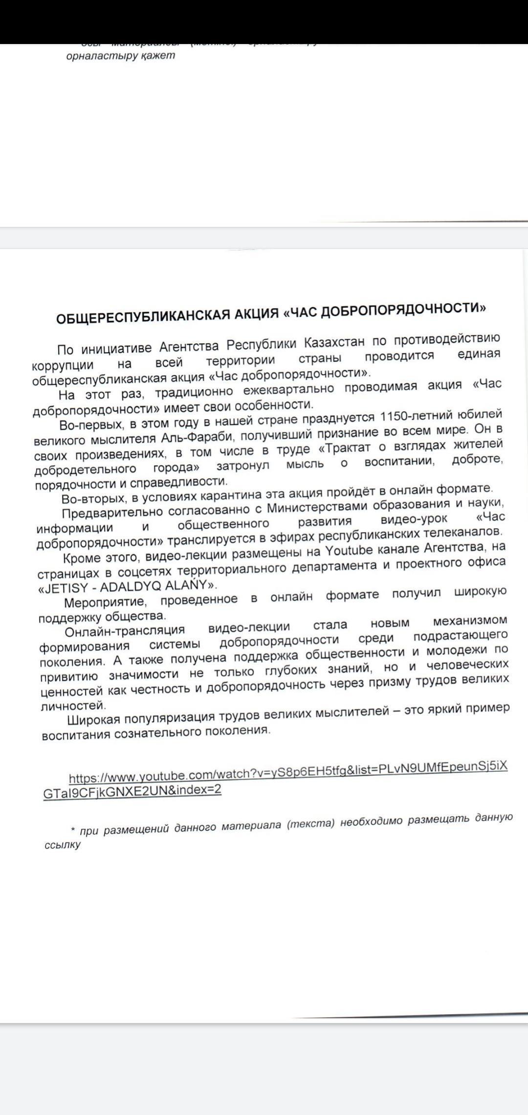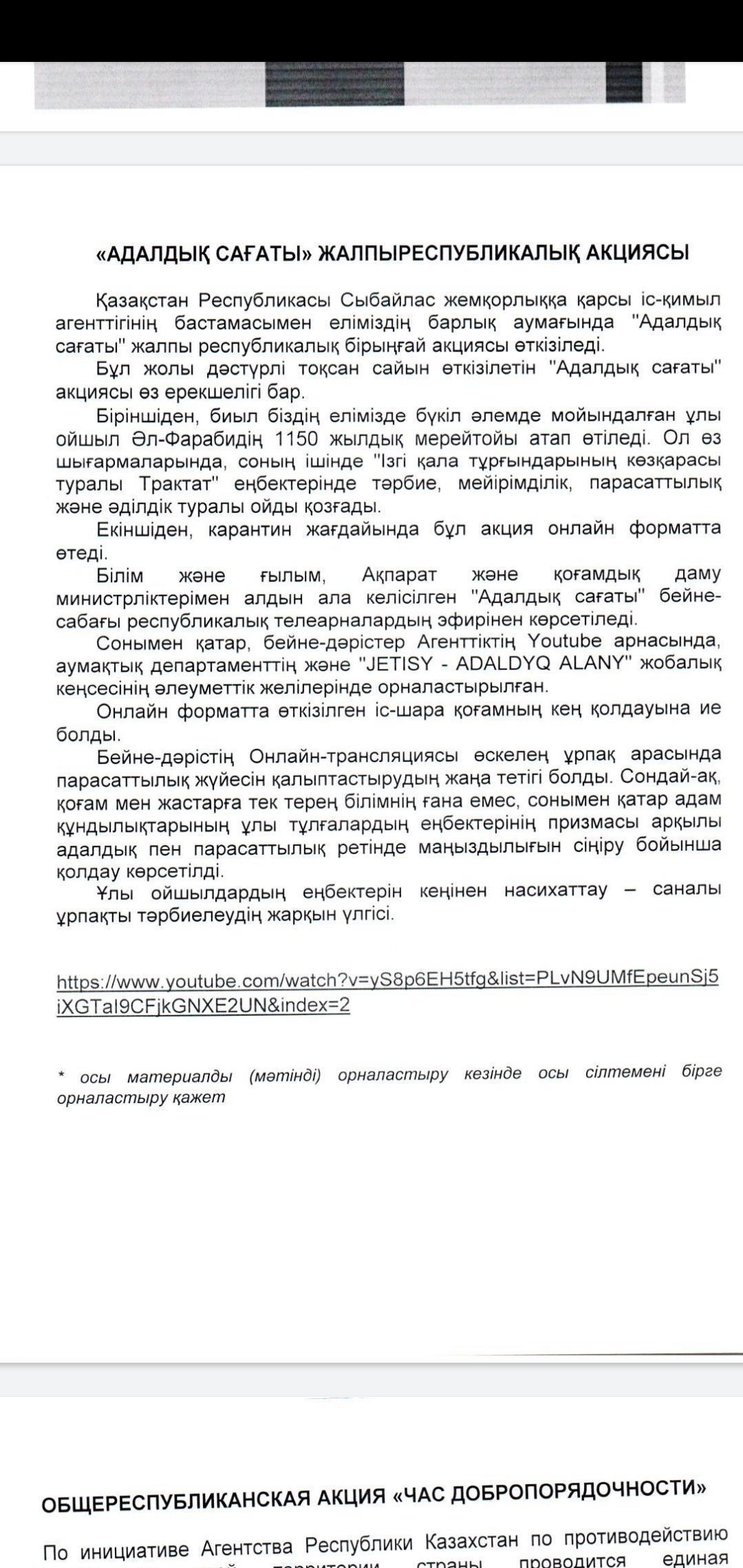 Адалдық сағаты » "Б.Қосынов атындағы орта мектеп мектепке дейінгі шағын орталықпен" КММ