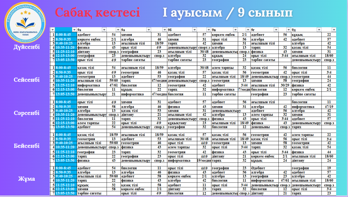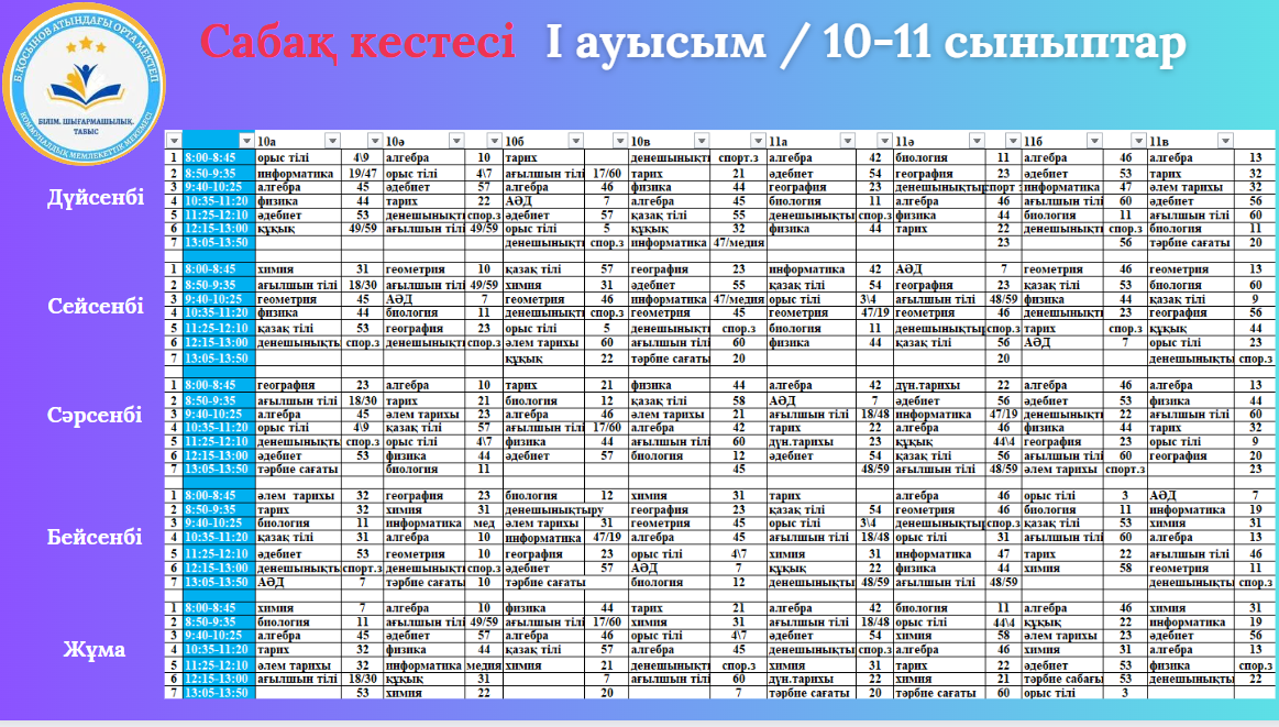 schedule of lessons (І ауысым) 8-11 сыныптар
