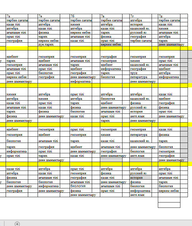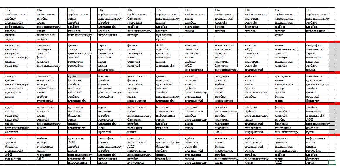 Сабақ кестесі 2025-2026 оқу жылы 1 жартыдылдық
