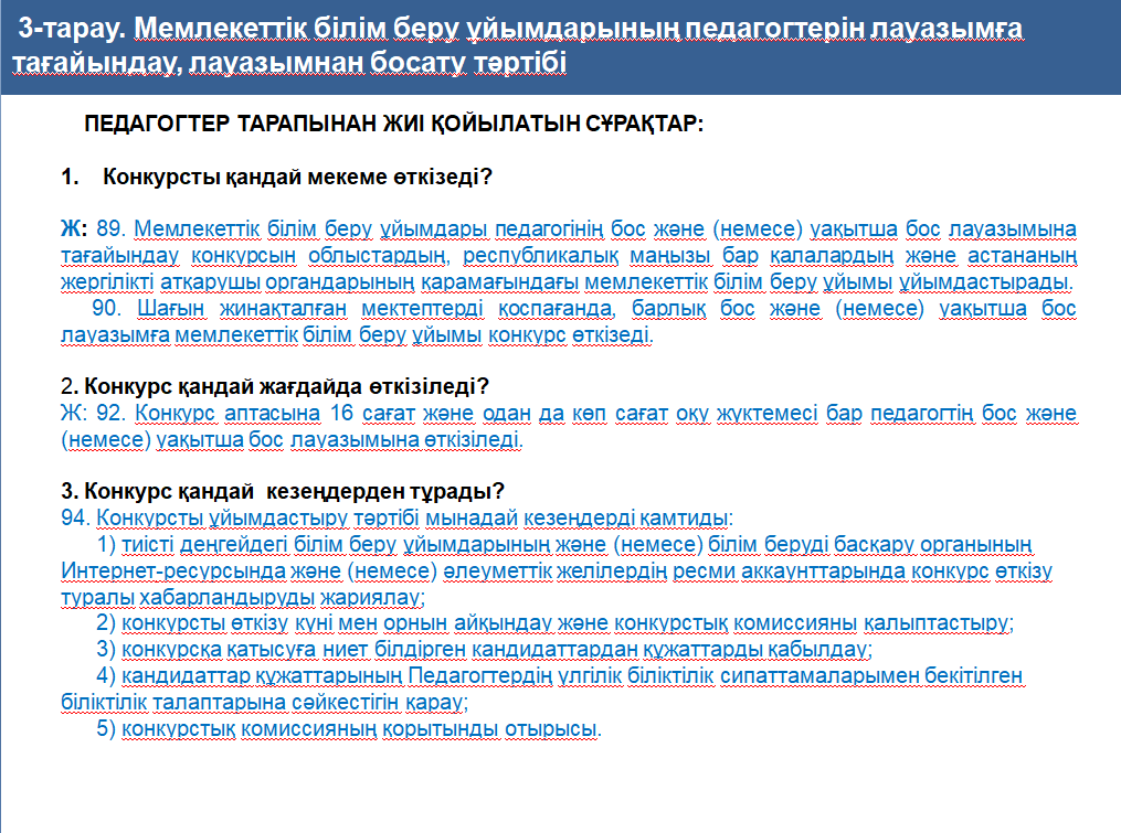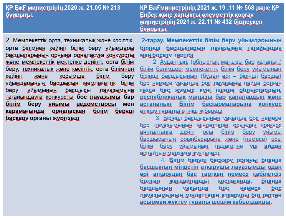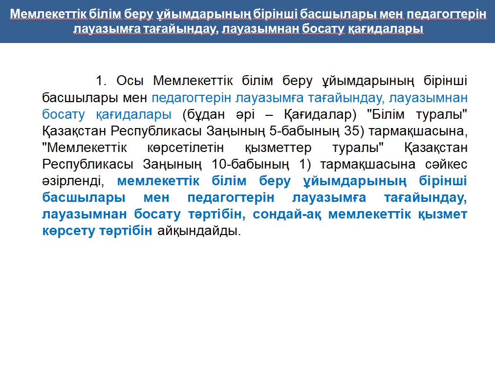 МЕМЛЕКЕТТІК БІЛІМ БЕРУ ҰЙЫМДАРЫНЫҢ БІРІНШІ БАСШЫЛАРЫ МЕН ПЕДАГОГТЕРІН ЛАУАЗЫМҒА ТАҒАЙЫНДАУ, ЛАУАЗЫМНАН БОСАТУ ҚАҒИДАЛАРЫ
