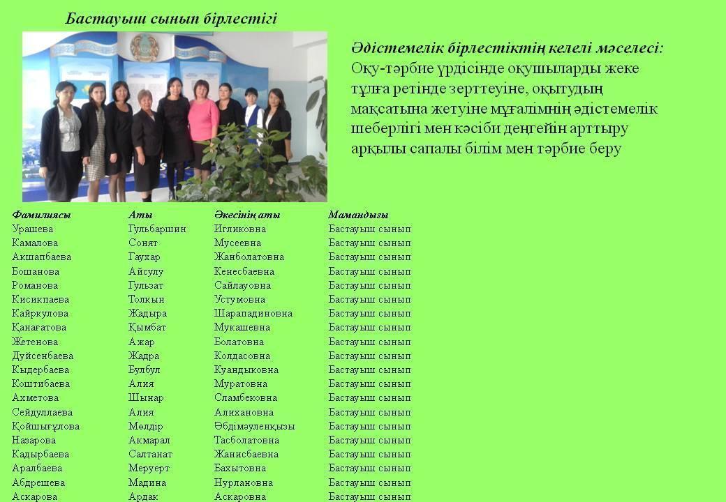 Мектеп мұғалімдері » "Б.Қосынов атындағы орта мектеп мектепке дейінгі шағын орталықпен" КММ